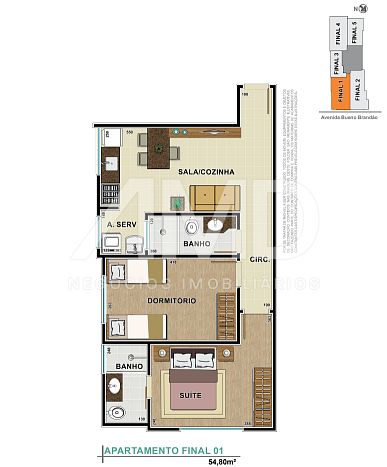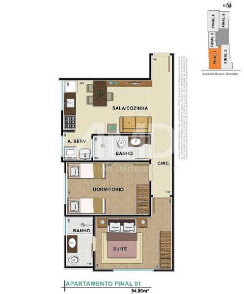 • Área privativa: 54,8 m²